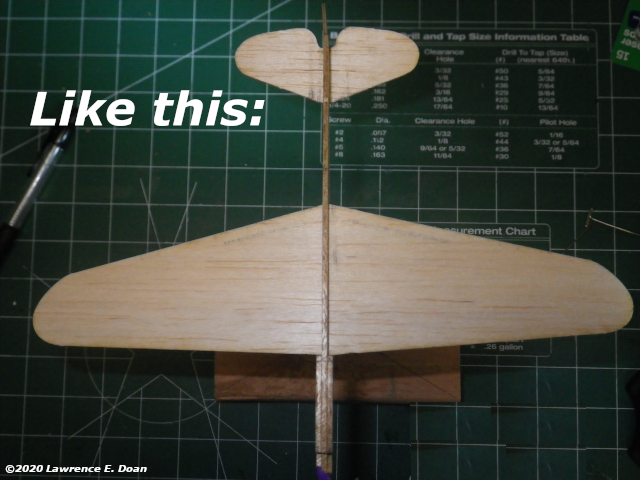 Be sure that the balance points are at the same place on both sides of the airplane. From the top, the airplane's nose should be pointed straight down the middle of the block and not off to one side: