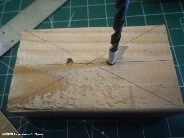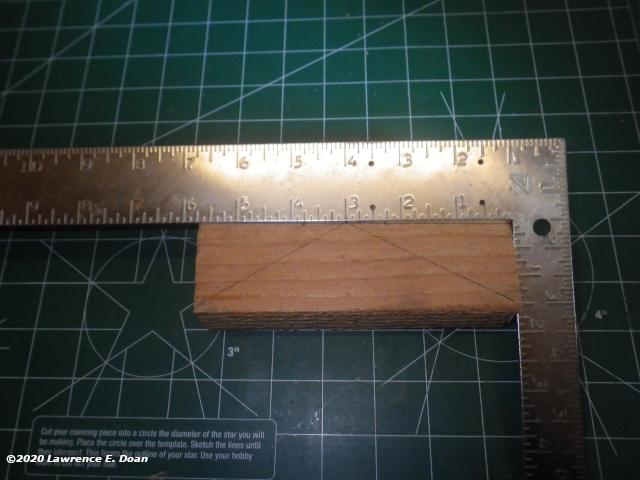 Find the center of the block. If your block is square, use the ruler to draw diagonal lines across the block from corner to corner. Where the lines cross is the center.
